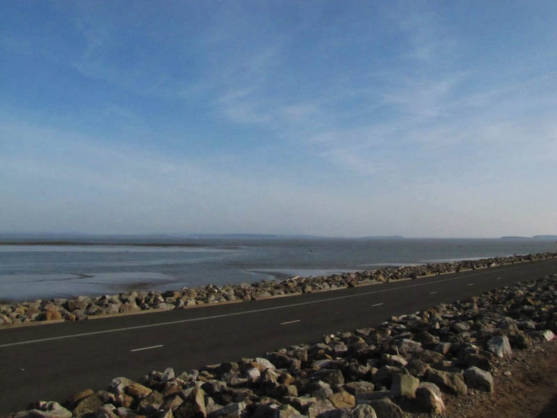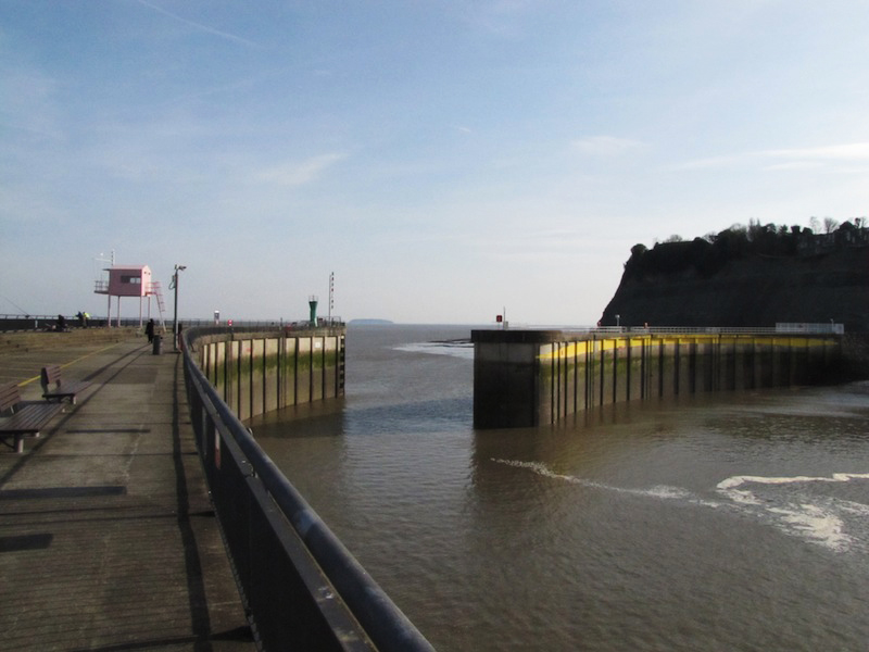 D’Konstruktioun hunn ech zimlech impressionant fonnt, a well haut esou schéint Wierder war, konnt een esouguer bis eriwwer an England gesinn (Weston-super-Mare läit géigeniwwer, fir genau ze sinn). Déi eng Säit Séisswaasser, déi aner Säit Salzwaasser ass e bësse surreal, mä do ze stoen, just d’Wellen ze héieren an déi Loft anzeootmen ass herrlech. Leider ass dat op Fotoen net anzefänken, mä hei trotzdem e puer Andréck vun enger Plaz wou et keng Touriste ginn a wou esouguer Jugendlecher laanscht d’Mier sëtzen ze fëschen.